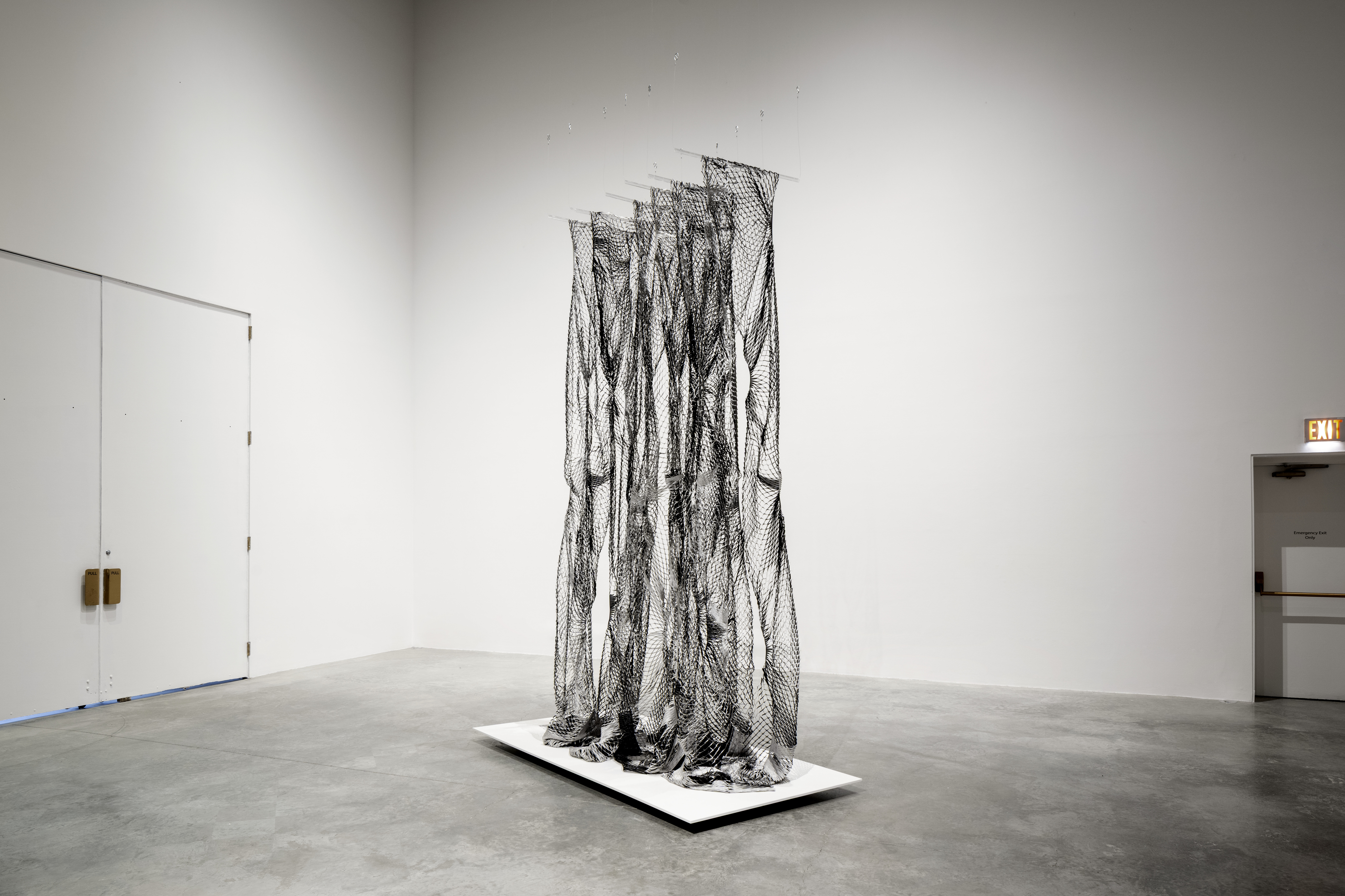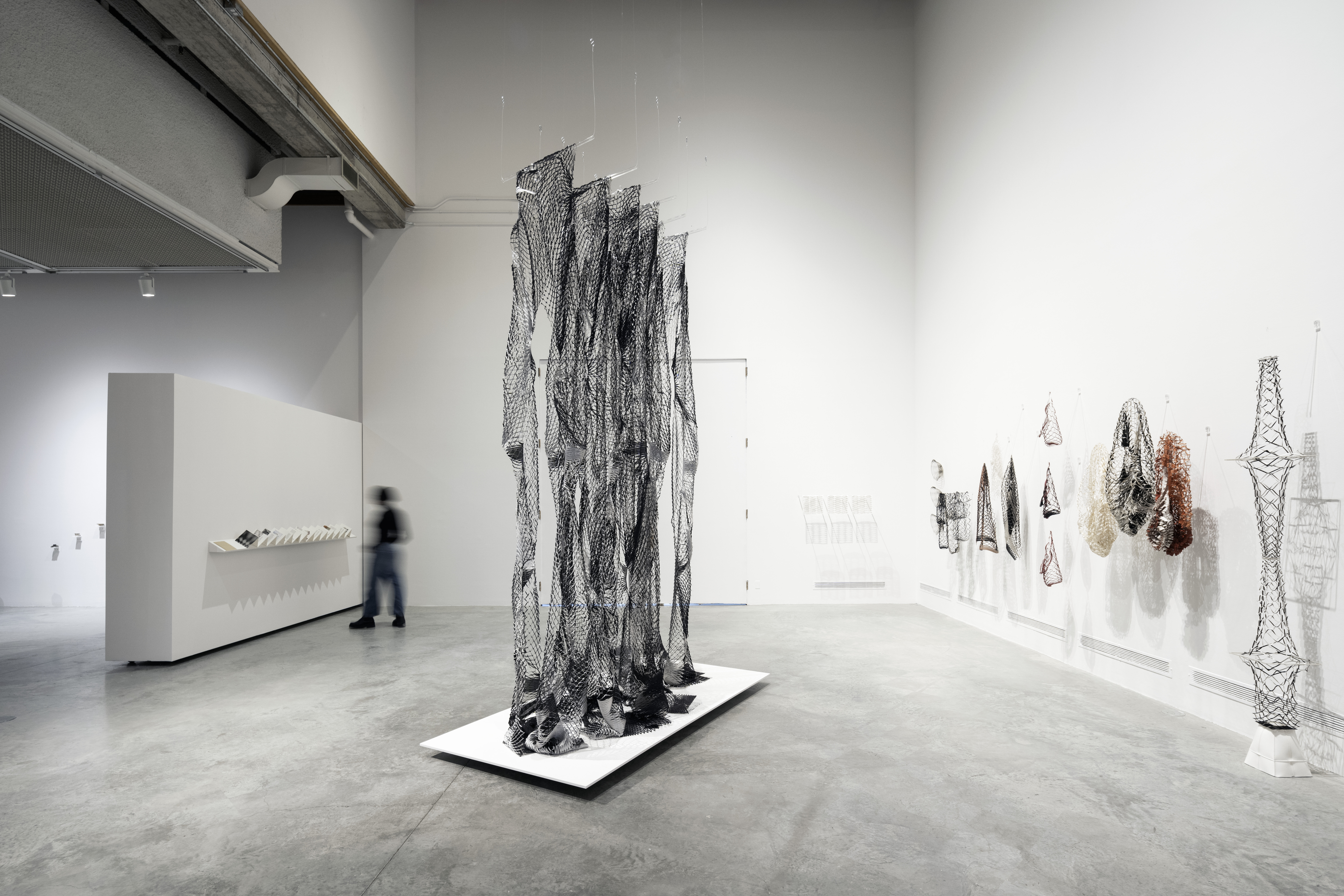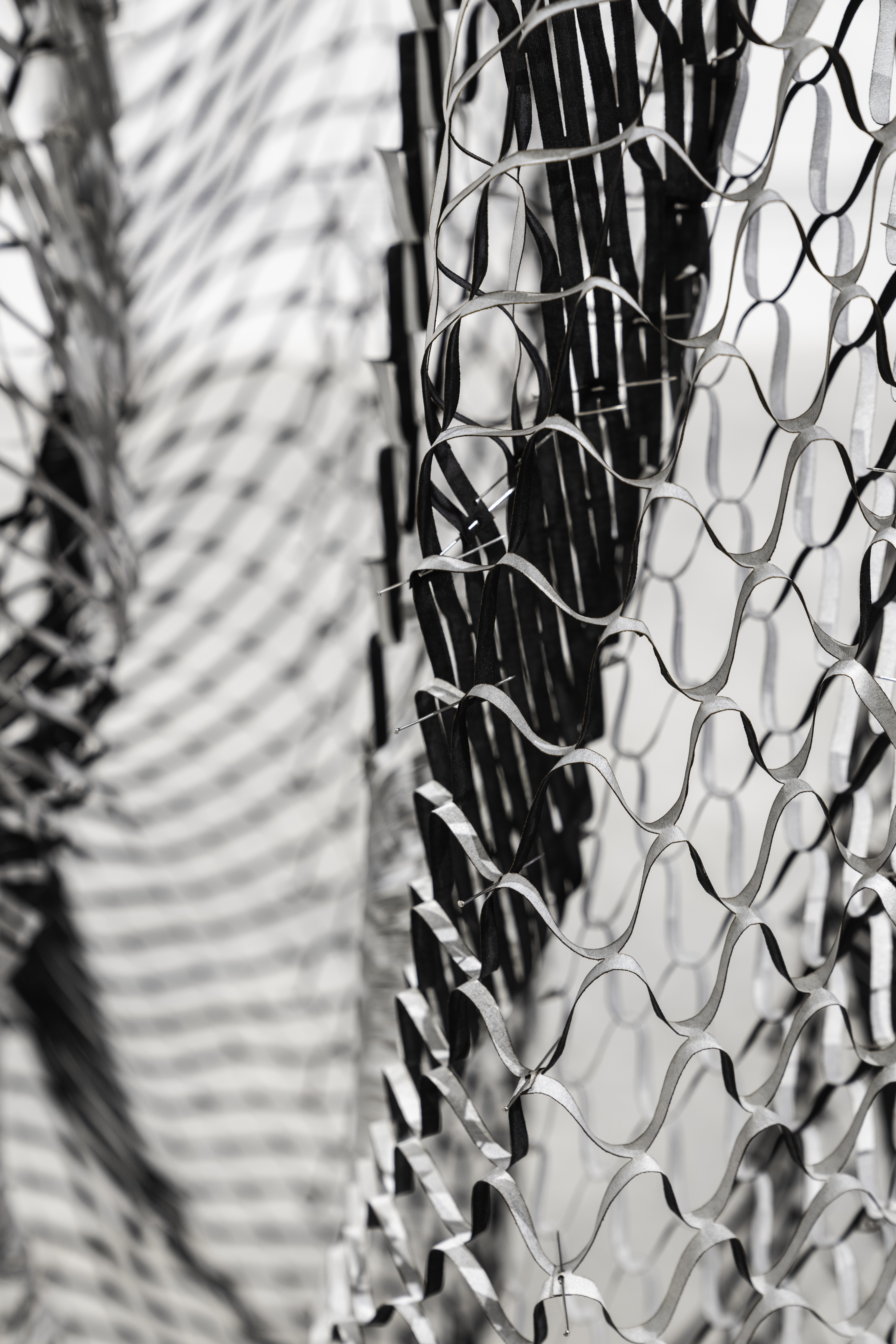 ![]() Natalie Gerber Becoming Photo credit: Britta Kokemor Natalie Gerber’s artistic practice addresses the intersection of craft and design, explored through interdisciplinary experimentation and research in textiles, ceramics, photography, print media and book arts. The sculptural work Becoming, started as an investigation in pattern and its relationship to my body. The large inter-lacing lattice like silk yardage, consists of a number of connecting textile panels hung in space. Made by fusing layers of naturally dyed, manipulated and laser cut silk. The geometric modular construction becomes juxtaposed with the fibres’ natural drape and asks the viewer to investigate the pinned connection points. Natalie Gerber |