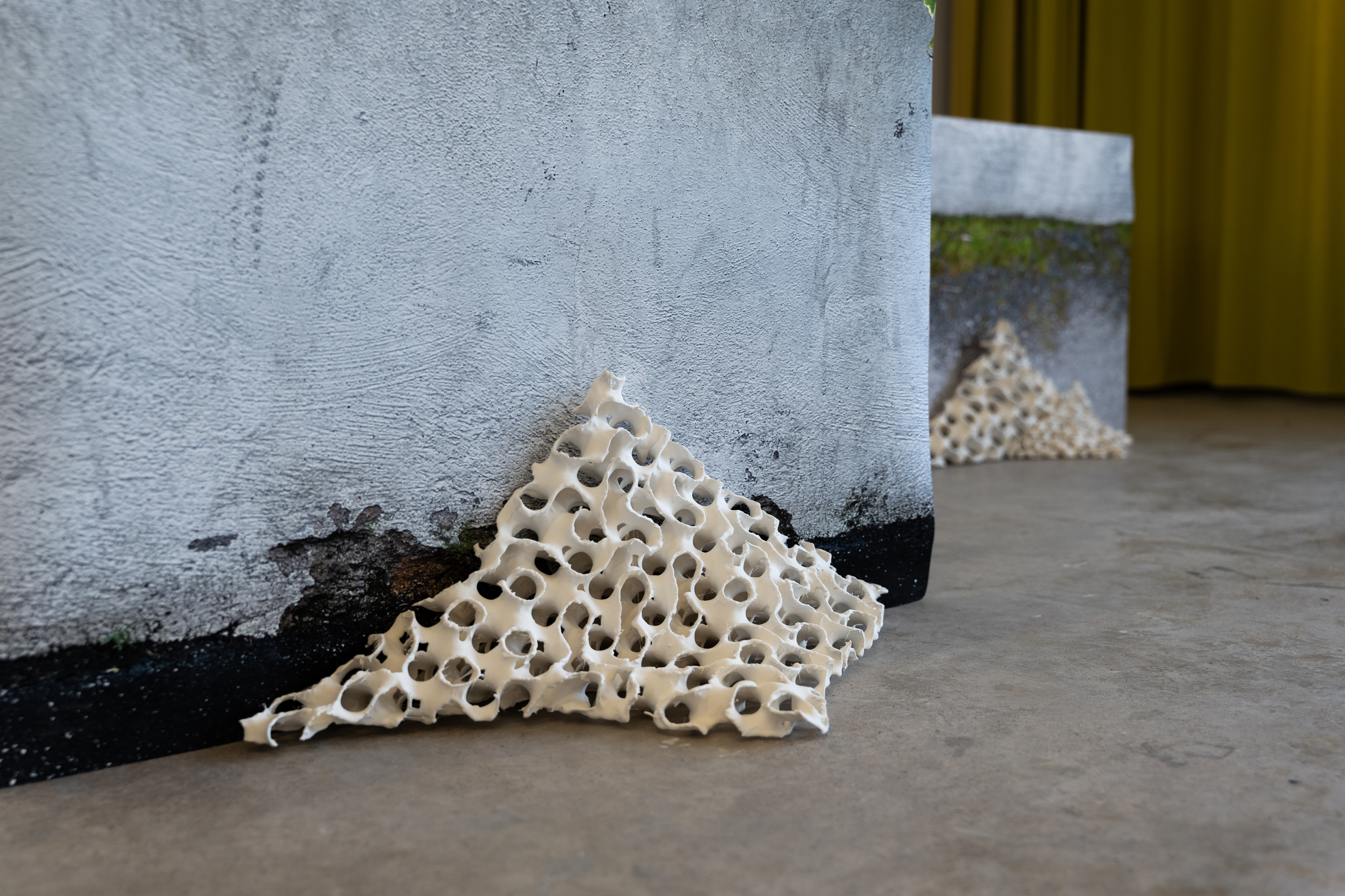 ![]() Camille Charron The Fountain Photos by Camille Charron La Fontaine is a project born of a double investigation carried out both in the Vosges Mountains and in the urban environment of Nancy, around a vital resource: water. At La Vigotte, a small village criss-crossed by springs and semi-artificial ponds, I designed a sensitive trail punctuated by ceramic stones. Underneath these stones, activities invite visitors to observe, touch, measure, draw... The aim: to relearn how to read the landscape and become aware of the cycles of green water, essential to the climate. These hybrid stones, carefully crafted and deliberately artificial, question our relationship with nature and reveal the tensions of a site undergoing ecological transformation. In parallel, my urban exploration focused on soil porosity and the place of living things in the city. I worked on 3D-printed porous structures capable of capturing moisture and welcoming spontaneous vegetation. These pieces, conceived as works of art, question the role of cleaners and propose a more permeable city, where the regeneration of water and soil becomes manifest and visible. In both cases, design acts as a mediator between environments, knowledge and practices: it is not just a question of creating objects, but of devising paths, tools and narratives that make the territory understandable and collectively habitable. My approach is part of a critical and inclusive ecology, attentive to social dynamics, situated knowledge and local forms of governance. It links matter, memory and collective action, and questions what we choose to preserve, transform or allow to happen. More than a project, La Fontaine is a call to relearn how to see and inhabit the invisible flows that run through our environments. |