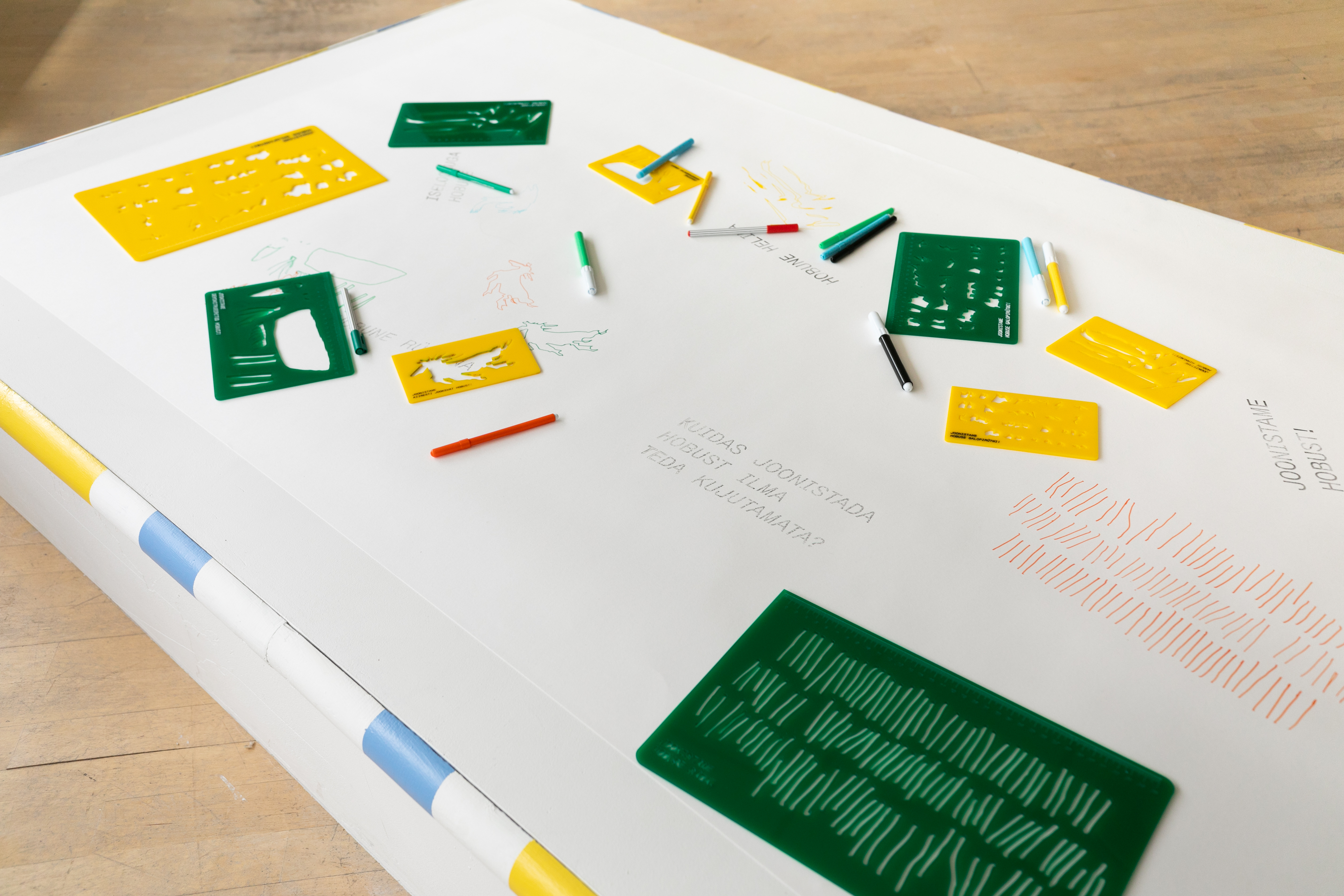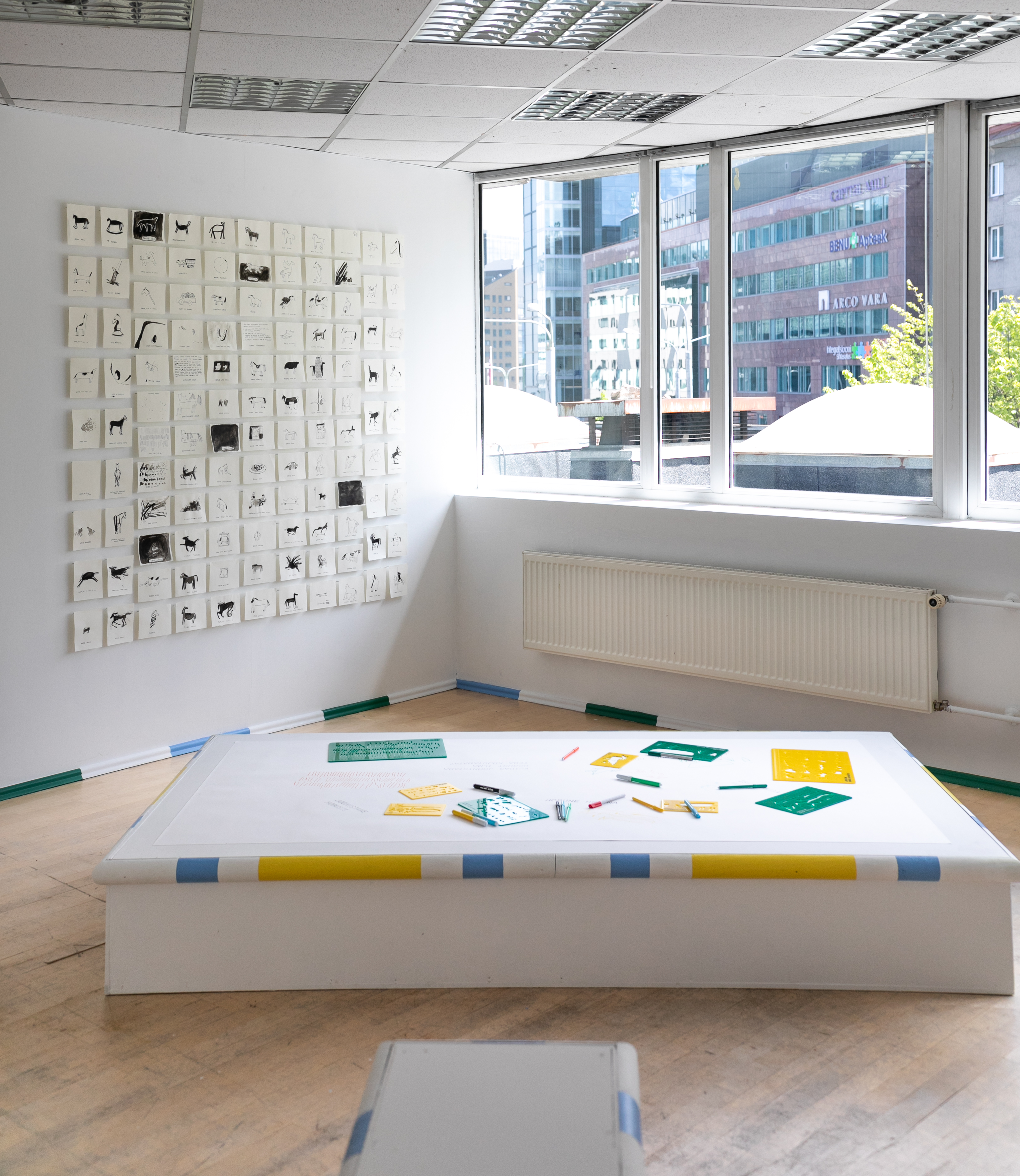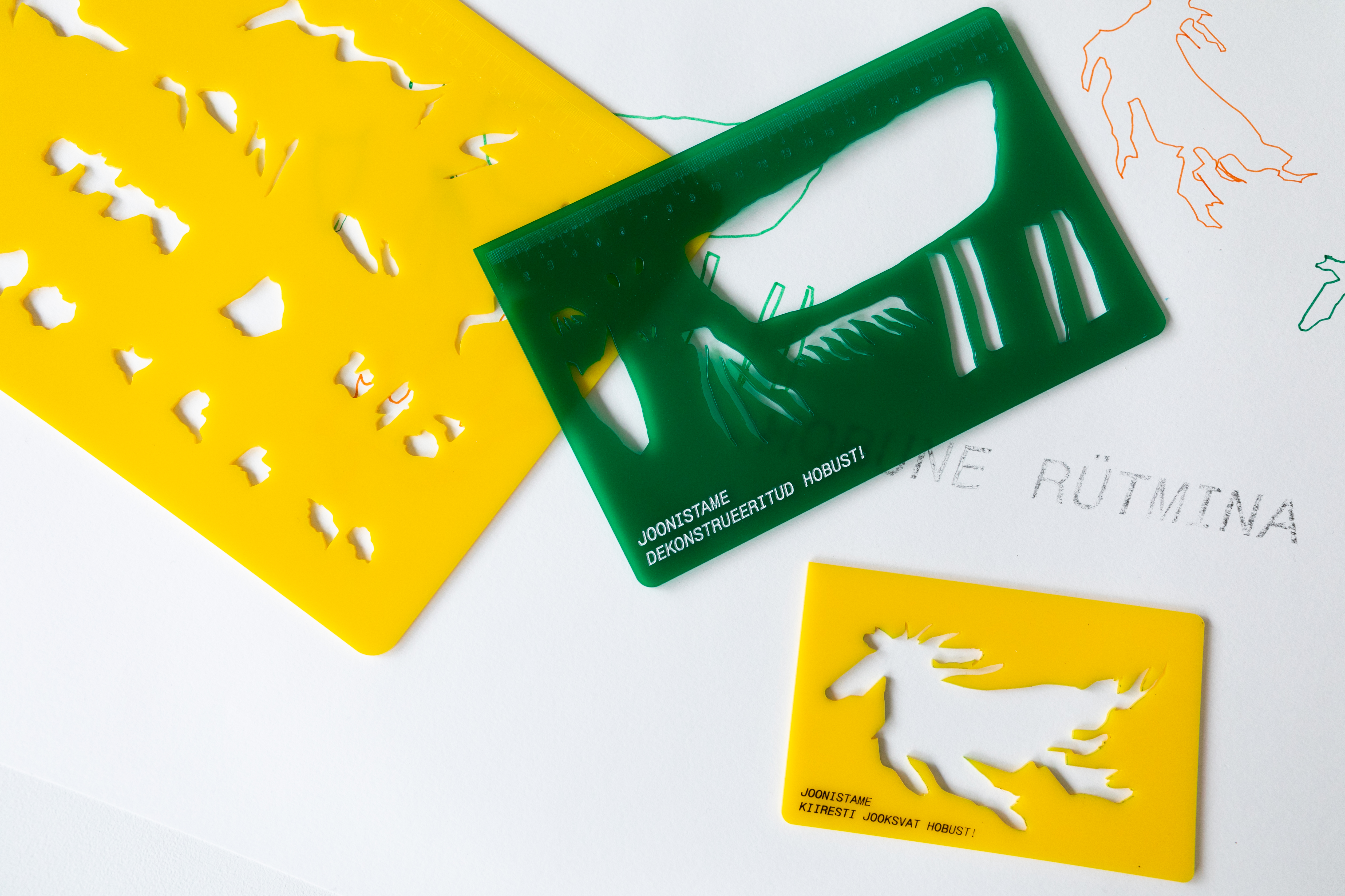 Photos by Helena Pass During a long-term artistic research process, I explored the evolving relationship between humans and horses, which led me to experiment with ways of representing the horse. I gathered my reflections in a book of ink drawings that presents 109 ways to depict (and perceive) the horse. Though the drawings show horses, they speak equally about humans — how we see, treat, and assign roles to horses through history. I also translated these explorations into abstracted stencils for an interactive drawing table. These invite viewers to move beyond anatomical or traditional representation and see the horse as a shape, rhythm, or voice. Posthumanist texts that I read during my artistic research encouraged a shift from human-centred thinking. Much of human progress has depended on other species, yet the credit remains ours. The project’s final phase — an interview with a horse — illustrates how, despite our best intentions, we inevitably project human thoughts and feelings onto animals. |