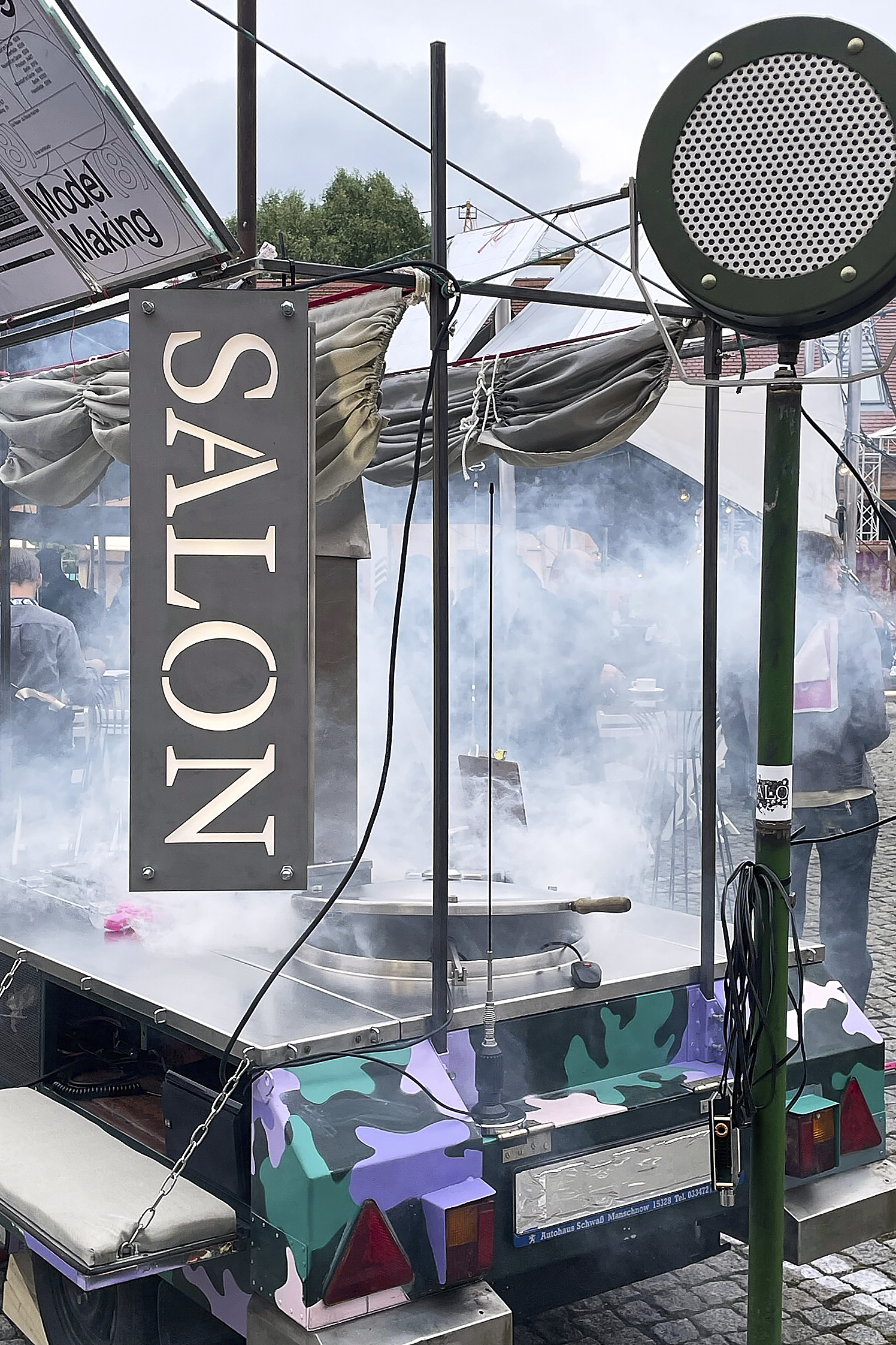 ![]() Leon Bischinger S A L O N Media credits: Leon Bischinger and Andreas Batke S A L O N is a field kitchen With S A L O N we are developing a series of site-specific cultural events that focus on East German public space. We want to find out how to counteract divisive tendencies in rural areas and create points of contact between people who hardly ever meet because of entrenched political discourses. The aim is to discuss issues that address East Germany as a cultural space and to develop possible futures on a small-scale, local and collective basis. Our salon is the situation around a so called goulash-cannon/ field kitchen. It is an archetype that stands for a conservative East Germany - and at the same time for an East Germany that we want to learn from and with. We want to be community-building, not 'pedagogical' but politically effective. Leon Bischinger |