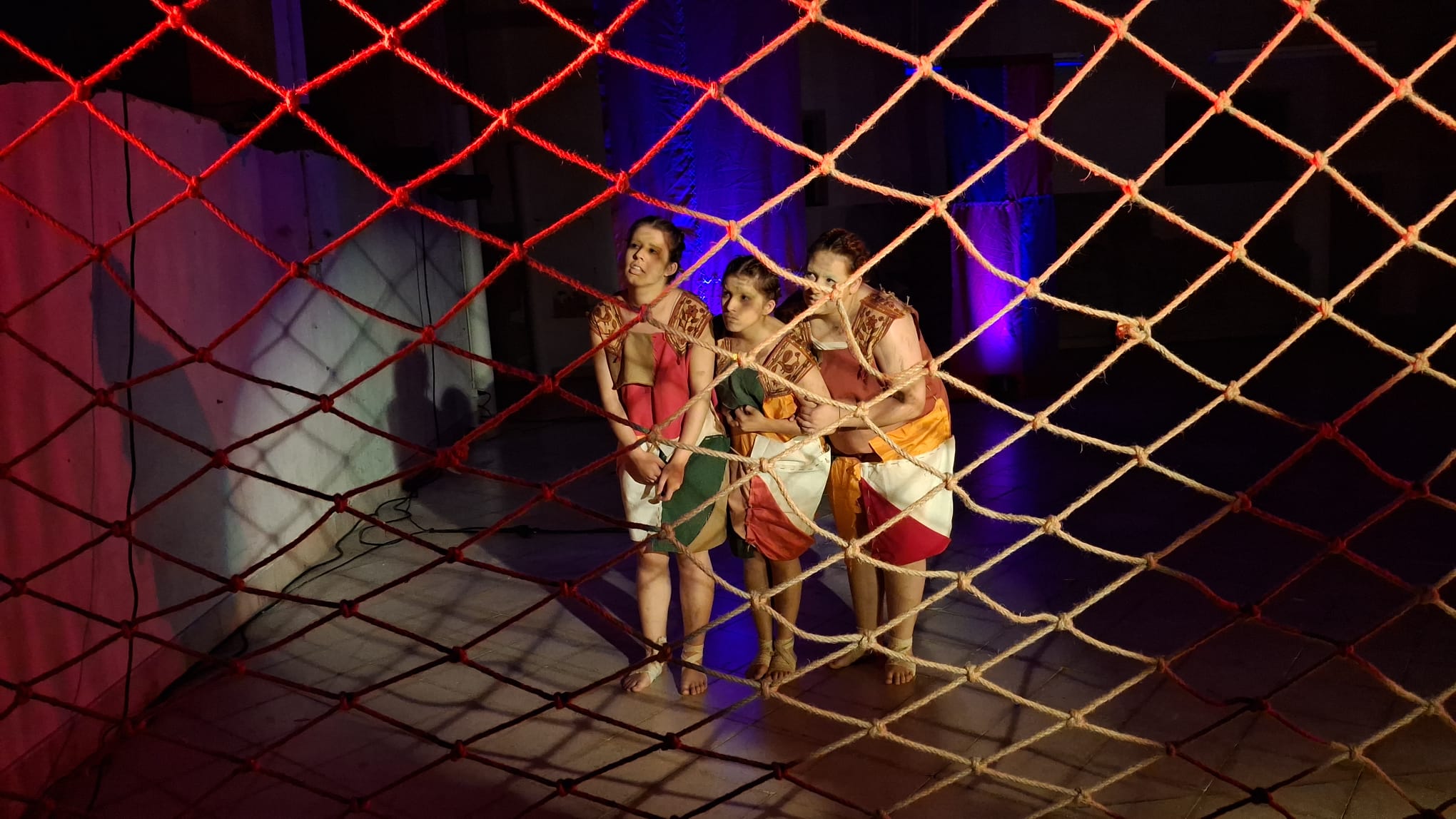 ![]() Anabela Monteiro, Carolina Marques, Carolina Quintas, and Sara Oliveira Enforcadas à Nascença (Hanged at Birth) Click for production details and credits SYNOPSIS The story of the Extraordinary is woven from the forgotten traces of the nameless. From the Odyssey, one dreams of Odysseus's cunning and Penelope's faithful astuteness. And the Sacrifice of the 12 dead Maids? In the name of the Hero's Honour... Protectors of Virtuous Penelope's Web. Trapped in Hades, waiting... Waiting for what? For a new life or for justice? EXTRACT FROM THE PLAY "Uh, uh!... Mr. Nobody! Mr. It's-Not-My-Fault! |